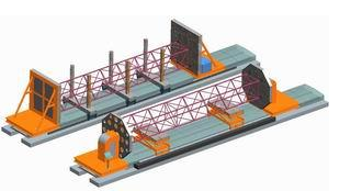 現在各個塔機生產企業的工裝形式也多種多樣,歸納為彎板式、整體式、整體翻轉式。現將這幾種工裝介紹如下: